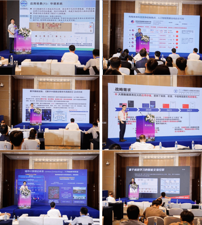 在论坛嘉宾报告环节,首先俄罗斯工程院外籍院士、合肥工业大学“大数据知识工程”教育部重点实验室主任吴信东教授带来了“Chace-KO: 一片连通、综合、容纳、制衡、演化的知识海洋”的主题报告;华为云人工智能领域首席科学家、国际欧亚科公司院士田奇教授带来了“盘古行业大模型”的主题报告;中国科公司计算技术研究所副所长、国家杰青程学旗带来了“大数据分析基础引擎及其实践”的主题报告;浙江大学求是特聘教授、国家杰青/优青高云君教授带来了“大图数据智能管理与分析”的主题报告;京东集团副总裁郑宇教授带来了“城市计算:从理论体系到产业实践”的主题报告;货拉拉 CTO张浩带来了“大数据助力货运生态可持续发展”的主题报告。