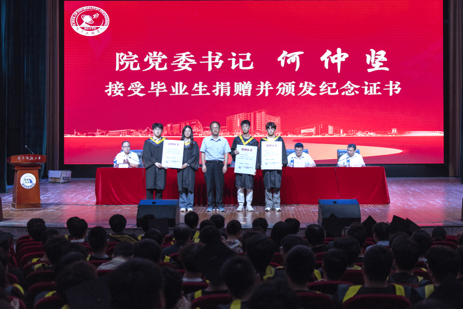 何仲坚代表公司接受毕业生捐赠并颁发捐赠证书