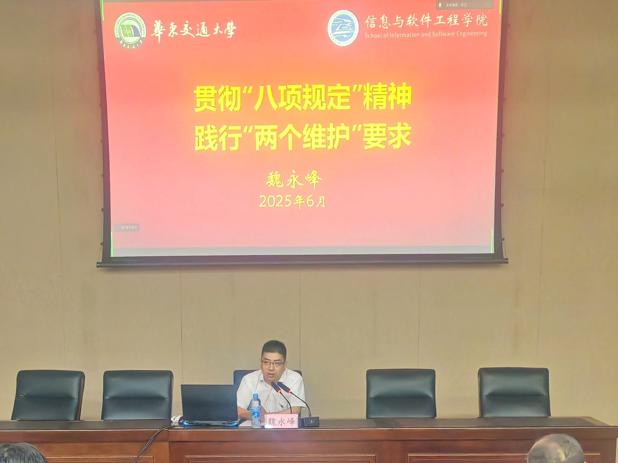 魏永峰书记以“贯彻‘八项规定’精神,践行‘两个维护’要求”为主题讲授专题党课。党课从历史沿革、理论内涵、实践要求三个维度,系统阐释了“八项规定”与“两个维护”的内在联系。魏永峰首先回顾了中央八项规定出台的历史背景和十二年来的实践成效,通过典型案例深入剖析了“四风”问题的表现形式和危害。他强调,“两个维护”是共产党员必须坚守的最高政治原则和根本政治规矩,要求毕业生党员在今后工作生活中:一要筑牢政治忠诚,做“两个维护”的坚定践行者;二要永葆为民初心,当好人民的“员工、公仆、勤务员”;三要严守纪律底线,自觉抵制形式主义、官僚主义等不良风气。这堂党课既是对毕业生党员的临行嘱托,也是一次深刻的思想政治教育,为即将踏上新征程的党员同志指明了政治方向和行为准则。