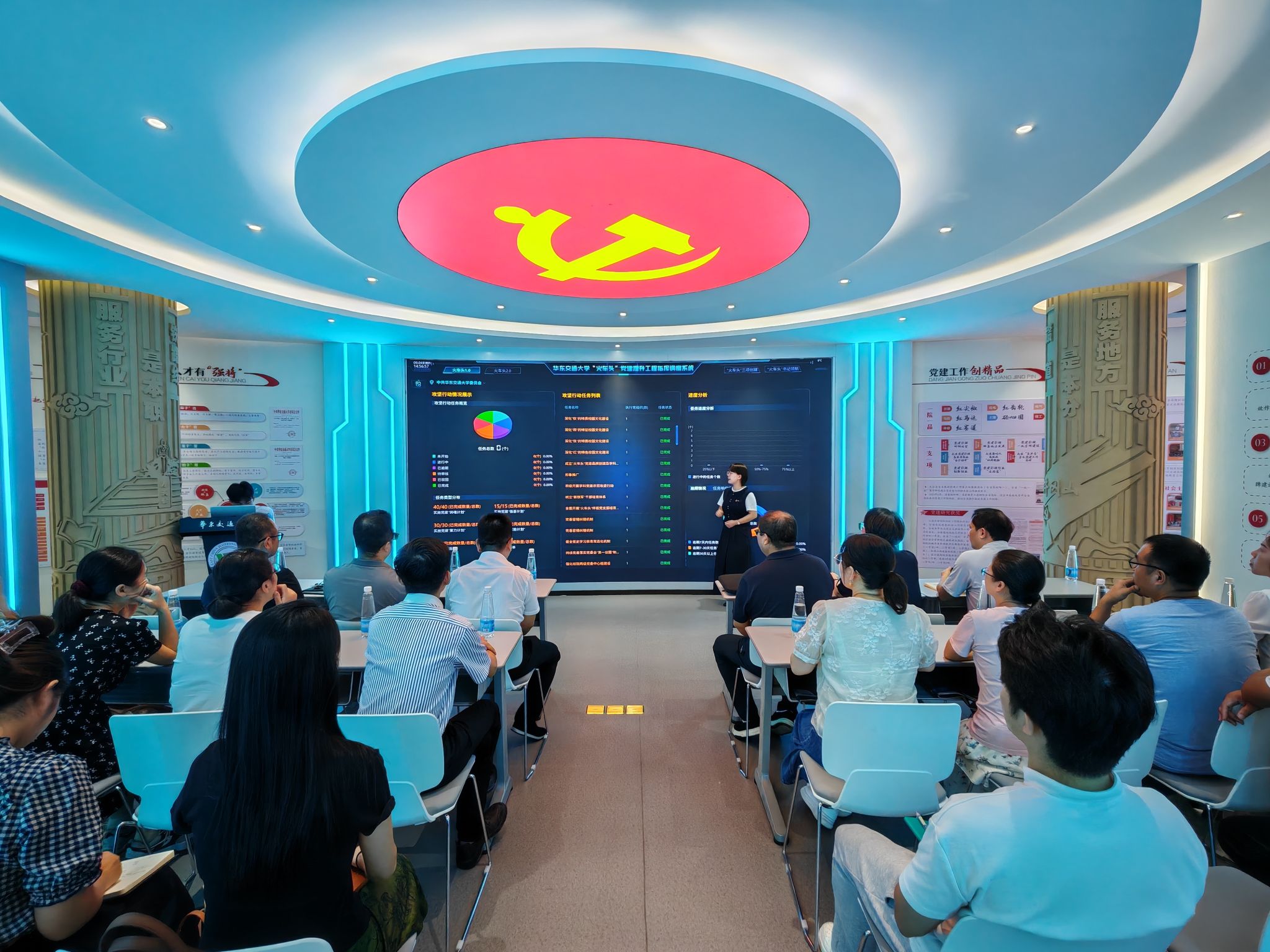 活动期间,实地参观了PA视讯“火车头”党建提升工程指挥调度中心。王巍详细介绍了公司“火车头”党建品牌的创建背景、主要做法及成效,并围绕推动党建与公司事业深度融合等方面进行了交流探讨。