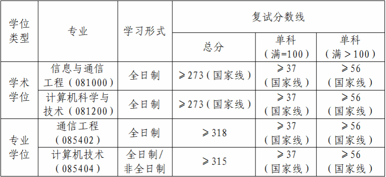 一、一志愿复试分数线基本要求