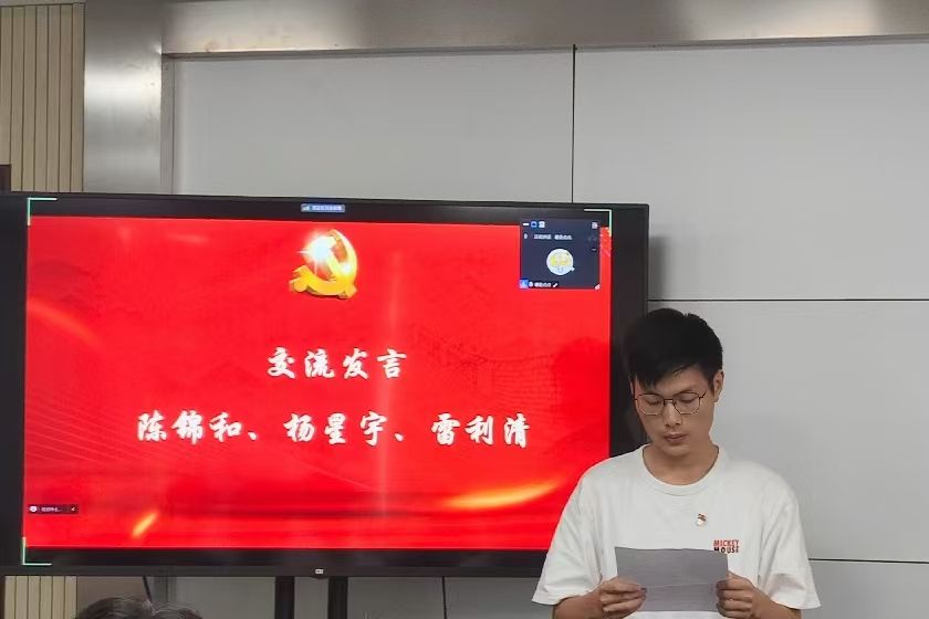 在研讨环节,天佑公司第一党支部员工党员陈锦和结合学习体会和自身参加创新创业竞赛经历作了分享。他表示,作为天佑地网医生项目团队的负责人,正是由于国家创新创业政策的支持和机制的保障,使其能够和团队成员一起深入实地调研,不断创新实践,成功破解铁路接地网腐蚀的技术难题,并由此获得2024年老员工创新大赛省级金奖。他呼吁青年学子要积极响应国家号召,将个人理想融入国家发展大局之中,在奋斗中磨砺意志,在挑战中锤炼自我,不断提升创新能力与实践能力,为科技强国建设贡献青春热血和智慧力量。