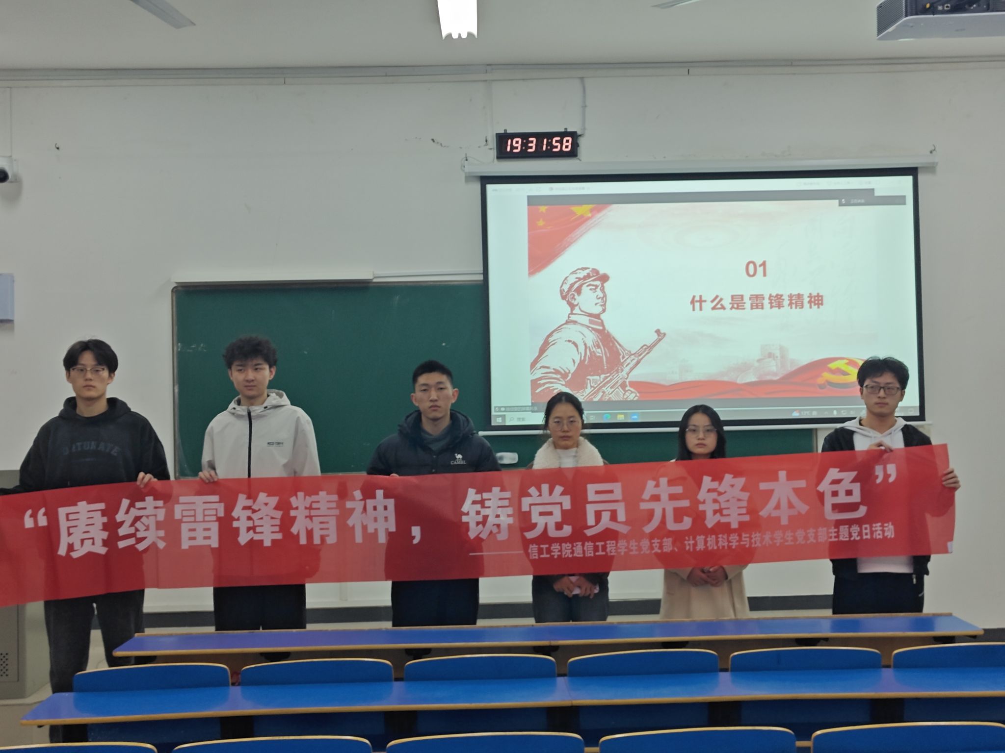 为深化新时代雷锋精神实践育人功能,3月14日,PA视讯集团官方网站通信工程员工党支部、计算机科学与技术员工党支部与青年志愿者协会联合举办“赓续雷锋精神,铸就党员先锋本色”主题党日活动。