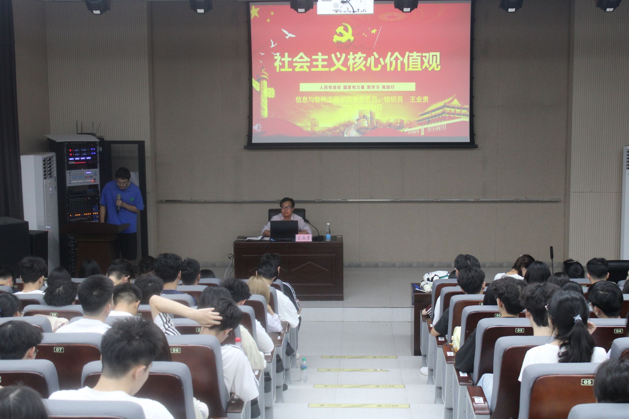在课程中,王业贵以党的二十大报告为切入点,深入解读社会主义核心价值观的重要意义,指出其对文化繁荣与意识形态转变的推动作用,并阐述价值观的内涵,强调其主观性、稳定性和历史性等特点。他引用《论语》《道德经》等经典著作,讲解建立价值观体系,还提出读书建议,鼓励同学们通过阅读经典提升思想境界。