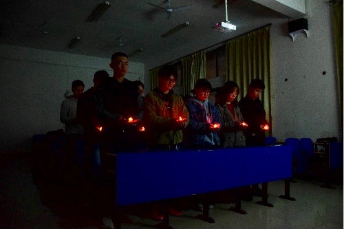 活动最后,同学们捧起烛光,自发地为凉山市山火中遇难的30名消防队员进行默哀,怀揣敬意,恭送英雄离去。