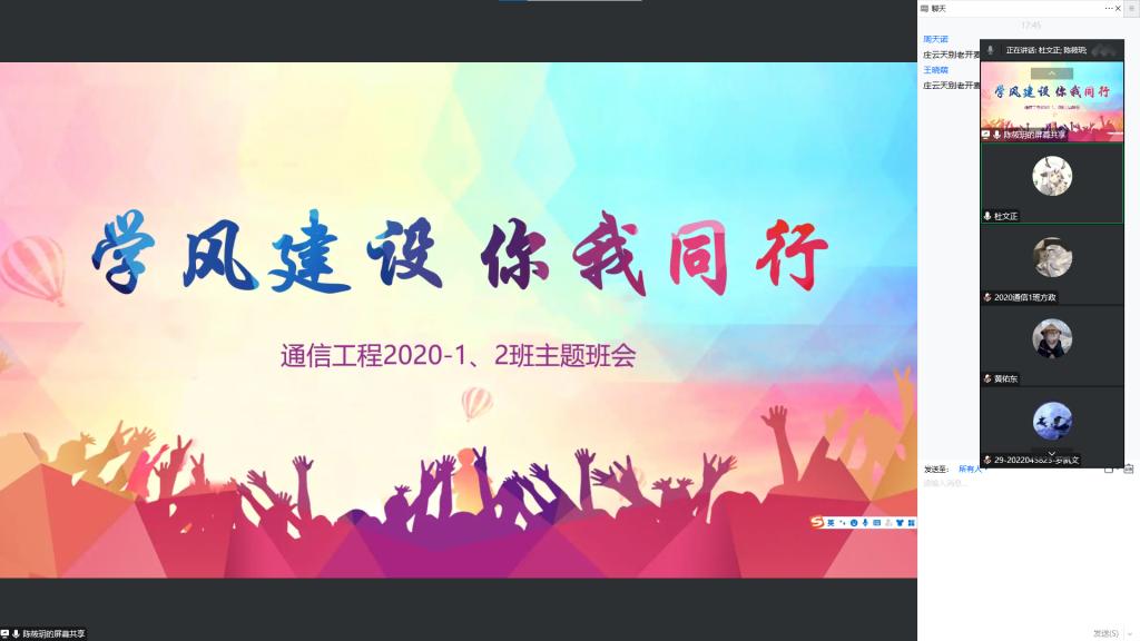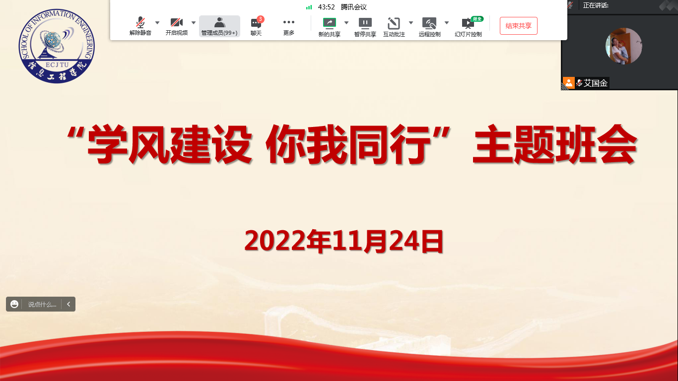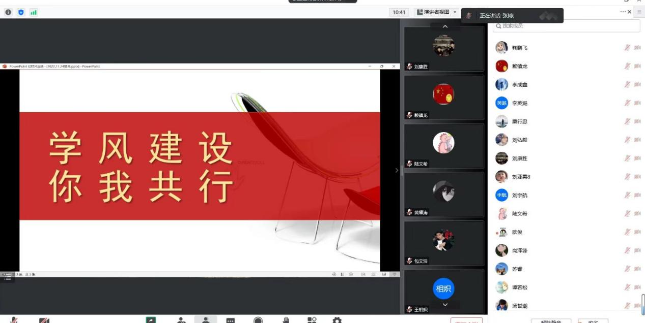 为贯彻落实学工处下发的《关于开展2022年“学风建设月”活动的通知》精神以及《关于开展“我的大学我做主”学风建设月活动的通知》有关要求,打造文明宿风,塑造健康班风,营造优良院风,公司全体辅导员组织员工召开“学风建设 你我同行”主题班会。