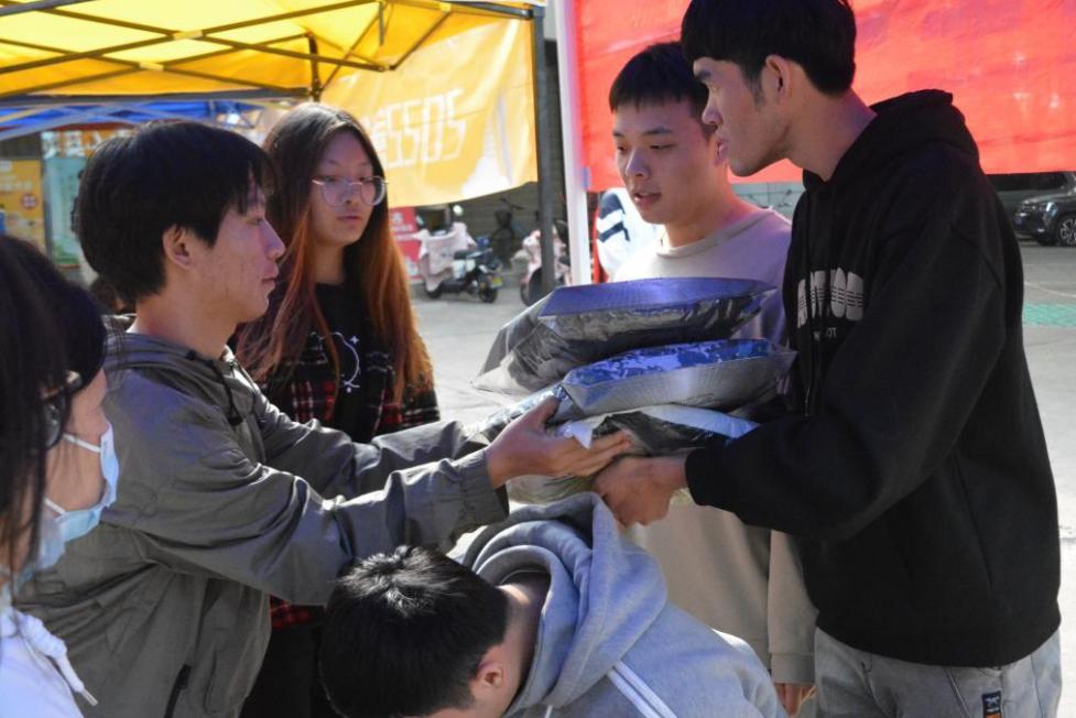 活动现场,大量师生踊跃参与,他们接连不断地送来折叠好的旧衣旧裤,寄托着捐赠者的一份爱心。活动结束后,信息工程公司“火车头”志愿服务队将回收的旧衣物打包成爱心包裹,通过官方渠道及时把师生们的爱心传递给需要的人。