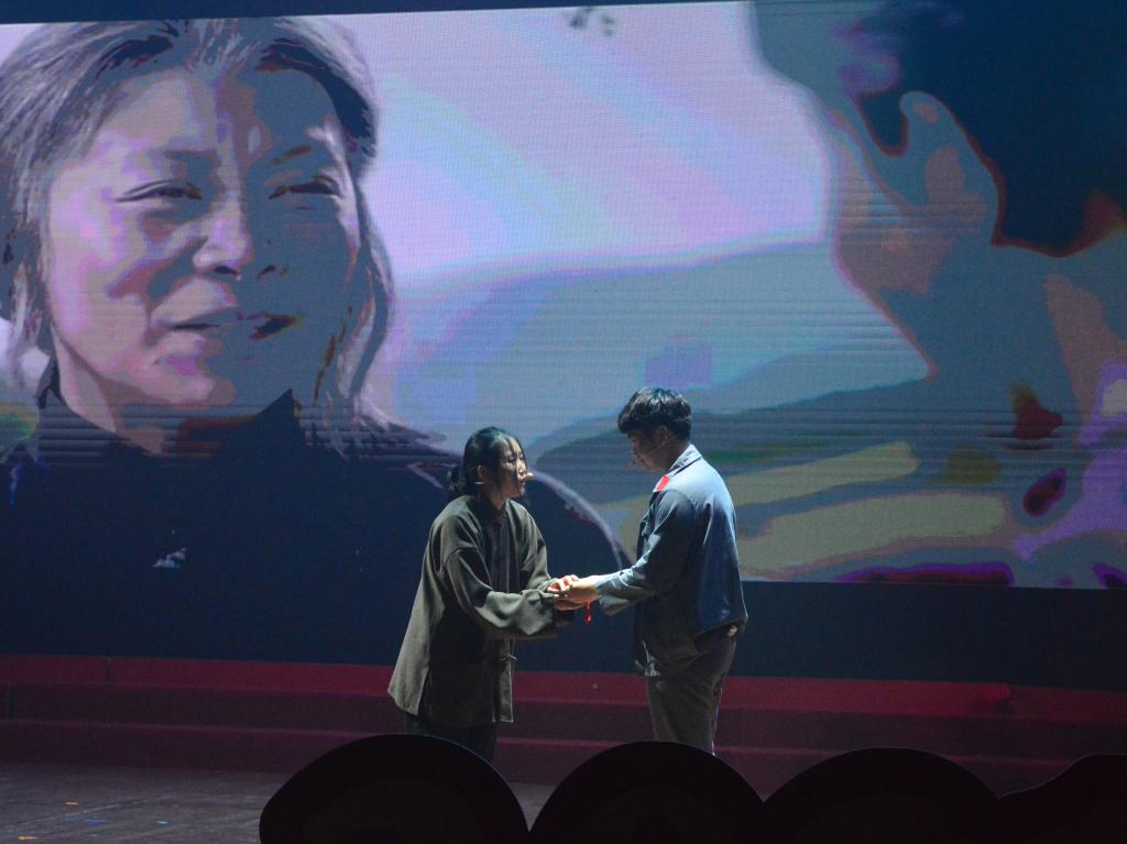 信息公司以“红肚兜”为引讲述杨荣显一家八子,满门忠烈的英雄事迹,进而讴歌从古至今无数共产党人身上不怕牺牲、无私奉献的精神。故事中,母亲在儿子参军前送的红肚兜,一针一线所含的不仅是对孩子的牵挂,更是对党和红军战士的拥护,是对幸福安定的期待。演讲过程中,母亲对儿子的思念,儿子战场赴死姿态,演员表现地十分细致,观众为之动容。演讲者声声透露真情,最后一句呐喊“中国有我”,与观众形成互动,赢得热烈的掌声。