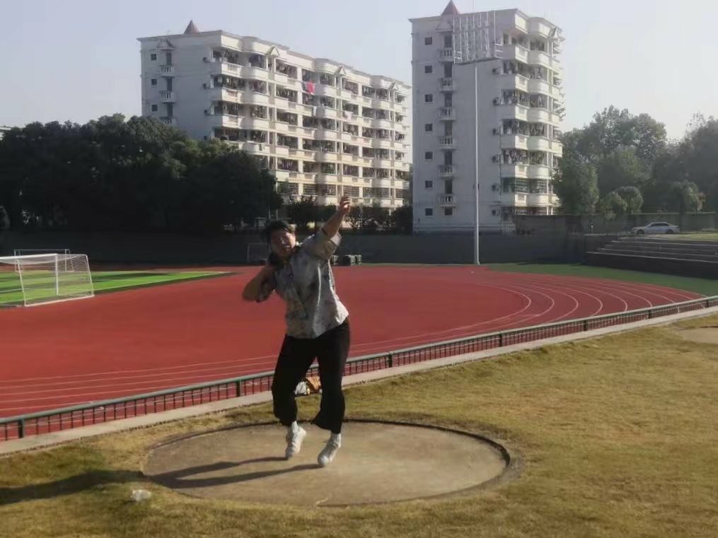 比赛开始前,杨李贤不放过一丝机会,加紧热身、试投,为接下来的比赛卯足一口气。集中精力,奋力一掷,最终杨李贤以7.44m的成绩位列第四。