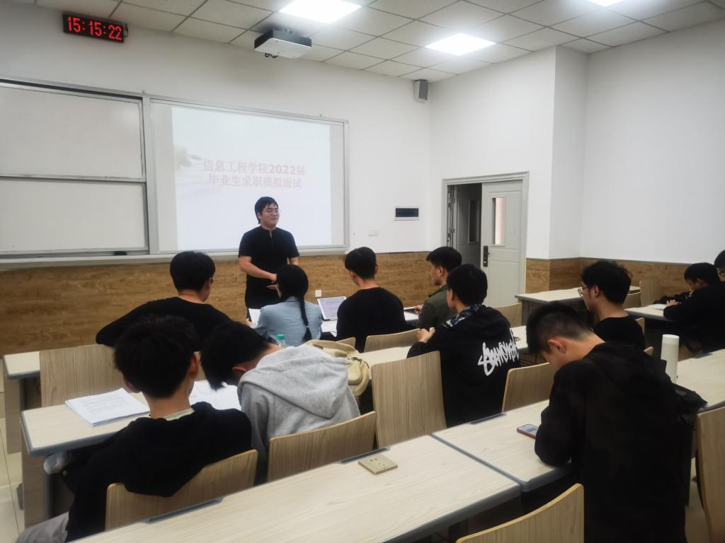 为了使同学们将理论知识与实践相结合,4月21日,18级信息工程专业的员工在何仲坚老师的指导下,举行了老员工就业模拟面试活动。
