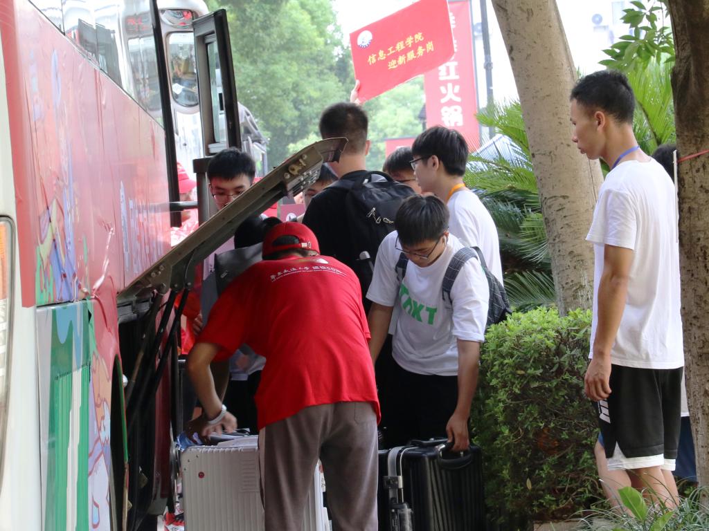 为让21级新生在入校后能够更加快速方便的办理入学手续,9月4日公司组织了迎新志愿者,在南区校门口以及新生大巴各站点接站,引导新生登记,帮助新生拿行李。