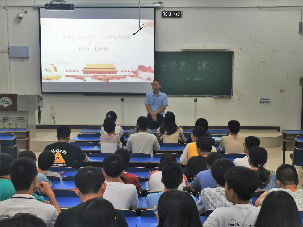 为贯彻落实习近平总书记在庆祝中国共产党成立100周年大会上的重要讲话精神,公司集中开展学习贯彻习近平总书记“七一”重要讲话精神主题开学第一课活动,热烈庆祝党的百年华诞,教育引导广大青年高举团旗跟党走,争做堪当民族复兴重任的时代新人。9月6日7点30分,19计算机专业全体同学在辅导员何仲坚老师的引导下,以“传承红色基因 勇担复兴使命”为题,对“七一”重要讲话精神进行了学习。