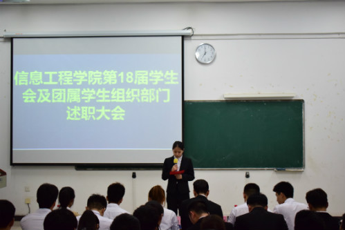 5月19日,信息公司员工会于逸夫楼210教室召开第十八届部长团述职大会。信息公司员工会第十八届主席崔峻铭,副主席武鹏翔、潘飞龙、曹宇博、万诗颀、吴嘉懿、新媒体中心主任刘炜洋、青年志愿者协会会长卢月绒出席本次会议,全体员工会成员与会。
