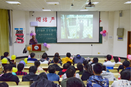 活动当晚,南昌市小动物保护协会会长张倍倍亲临华东交大,于南区图书馆101室开展保护小动物讲座。张倍倍首先介绍了当今校园内依然存在不关爱流浪小动物,甚至虐待小动物致死的现状,并为同学们讲述了动物保护的意义与重要性。志愿者为在场的同学们播放了《与猫狗相处的知识课堂》相关视频,并积极呼吁广大在校员工不养宠物,做一个负责任的老员工。听取讲座的同学们积极与张倍倍进行互动交流,活动现场气氛热烈。