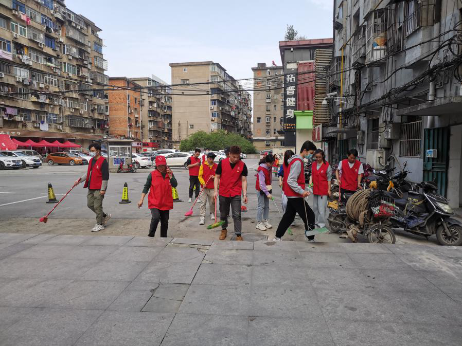 支部同志进行街道清扫志愿活动。经过支部同志的协作,街道的垃圾全部清扫完毕。