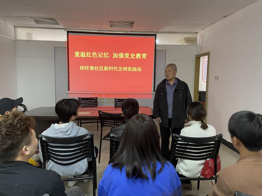 支部同志来到桂旺巷社区党员工作站,一位党龄55年的老党员带来了一场别开生面且印象深刻的党课。他谈到:“我曾经是一名工程兵,当时就是想着,无论情况多么危险,我都要冲在前面,入党动机很单纯。现在作为青年老员工的你们,要坚守自己的初心,坚持中国共产党的领导,对党忠诚,把坚定的理想信念落实到实际行动中”。
