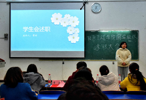 1月11日,信息工程公司团学组织述职大会于教14栋206室召开,信息公司学工办副主任、团委副书记艾国金、杨青出席会议,员工会及团学组织各部门成员与会。