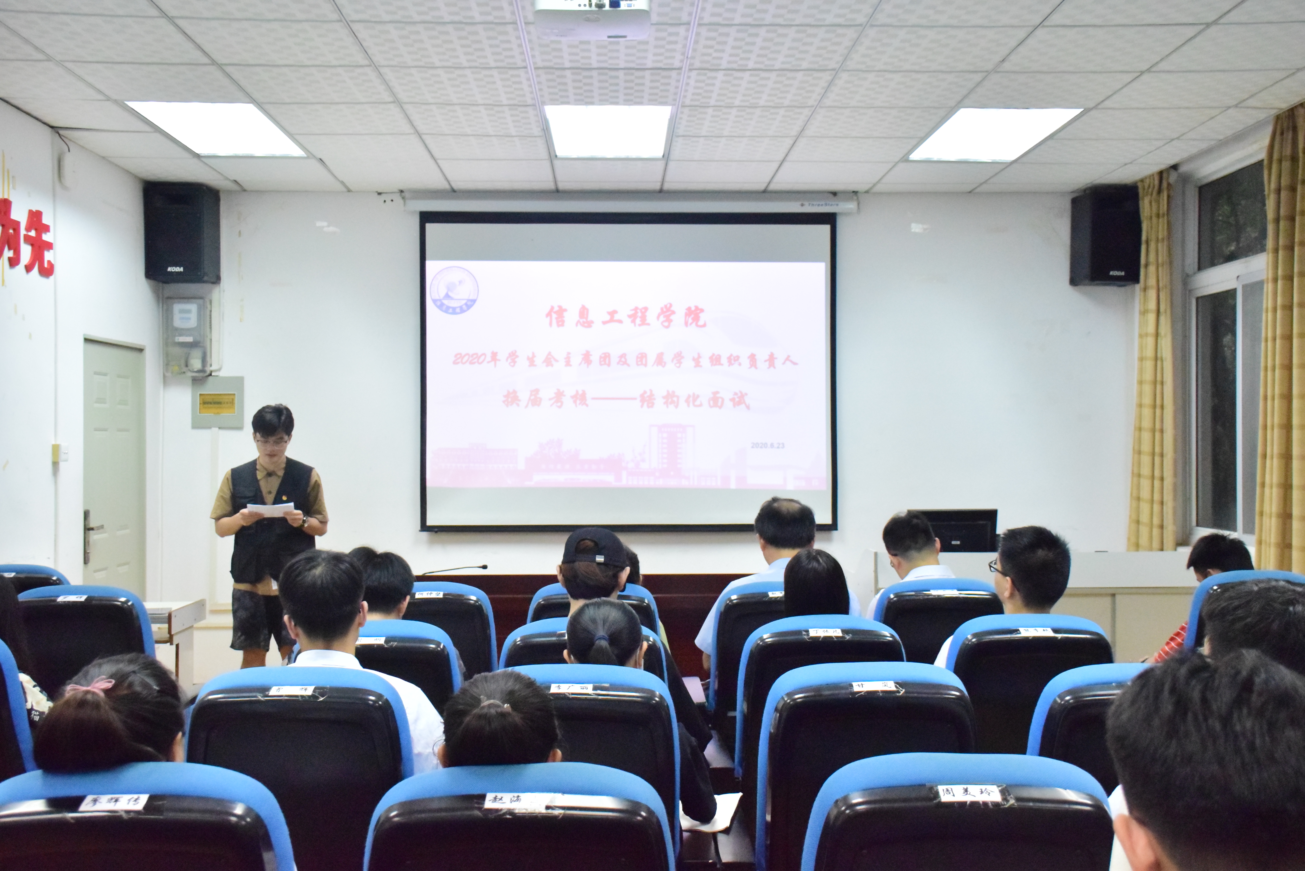 6月23日,信息公司于教4栋307室举办第二十届员工会主席团及团属员工组织负责人换届结构化面试。信息公司党委副书记何仲坚老师、信息公司学工办副主任兼团委副书记杨青老师、辅导员艾国金老师和第十九届员工会主席团和团学组织负责人担任评委。