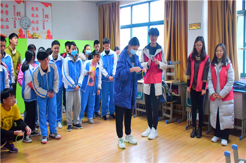志愿者带领启音公司员工做互动游戏。“运输糖果”环节,启音员工们脑洞大开,将盘子折成不同的形状,协力运送糖果;“背夹球”环节,同学们二人协作、合力运球;“丢圈圈”环节,信息志愿者与启音员工一同较量。压轴项目“绘画彩蛋”环节,志愿者在气球上写下祝福,送给启音公司的员工,让短暂的美好长久驻留。
