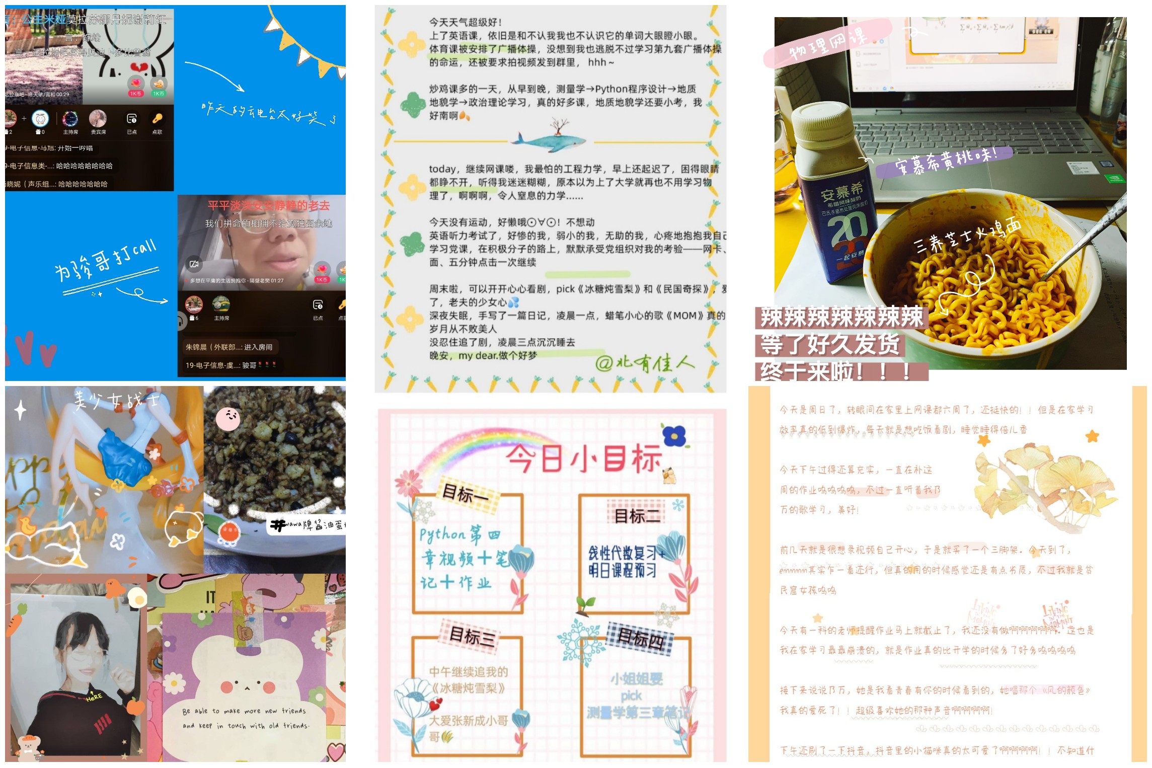 为期五天的活动中,除聊天之外,主办方每日都会推出当天的趣味挑战。第一天,同学们需要用“春天”“樱花”等指定关键词编写一个小故事;而第二天则是借助家中任意道具敲击出歌曲《believer》前奏……每天还会在群内经过投票后评选出参与作品中一名同学的优秀作品,获奖者可得到任意照片的精心手绘奖励。最终还有“彩蛋”,将这五天以来的生活琐碎及所思所感以plog和电子手账记录下来,作为珍贵回忆。