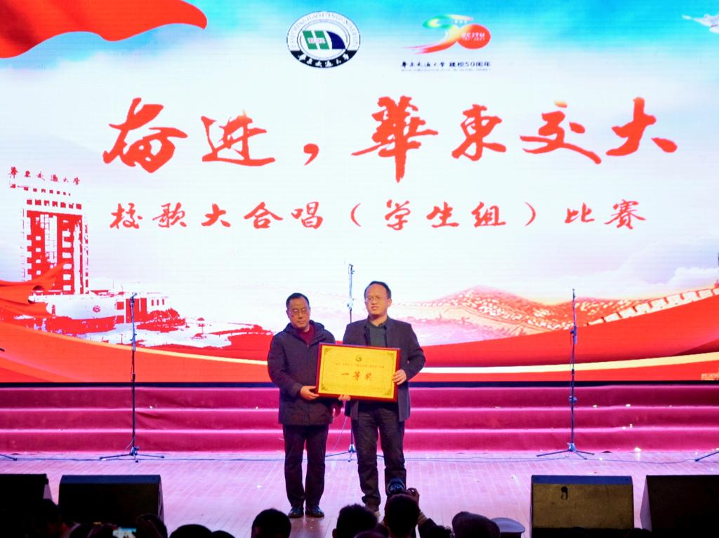 为纪念“一二·九运动”85周年、喜迎校庆50周年,12月9日,华东交大于南区礼堂举办“奋进,华东交大”校歌大合唱比赛。信息公司以9.41的高分获得一等奖。