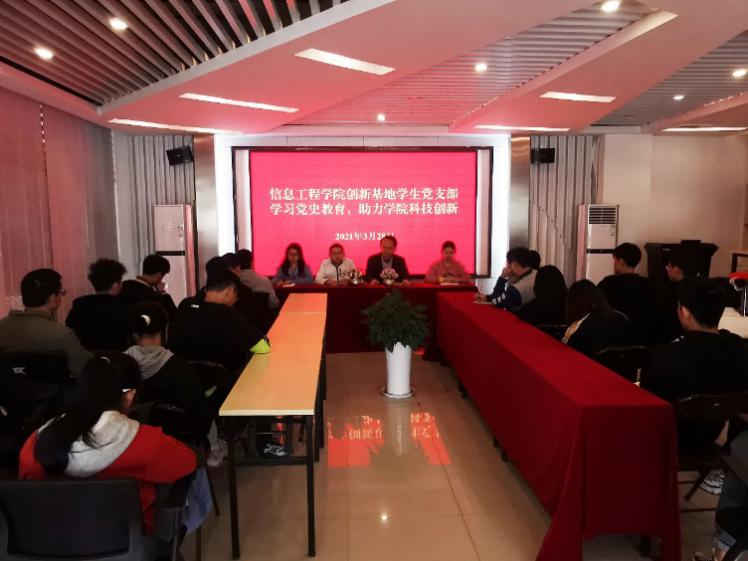 信息工程公司创新基地员工党支部3月28号下午在逸夫楼负一楼创新创业会议室召开“党史学习教育,促进公司科技创新”会议活动,公司党委副书记何仲坚、创新基地员工党支部书记黄德昌和创新基地员工党支部全体员工党员参加会议。