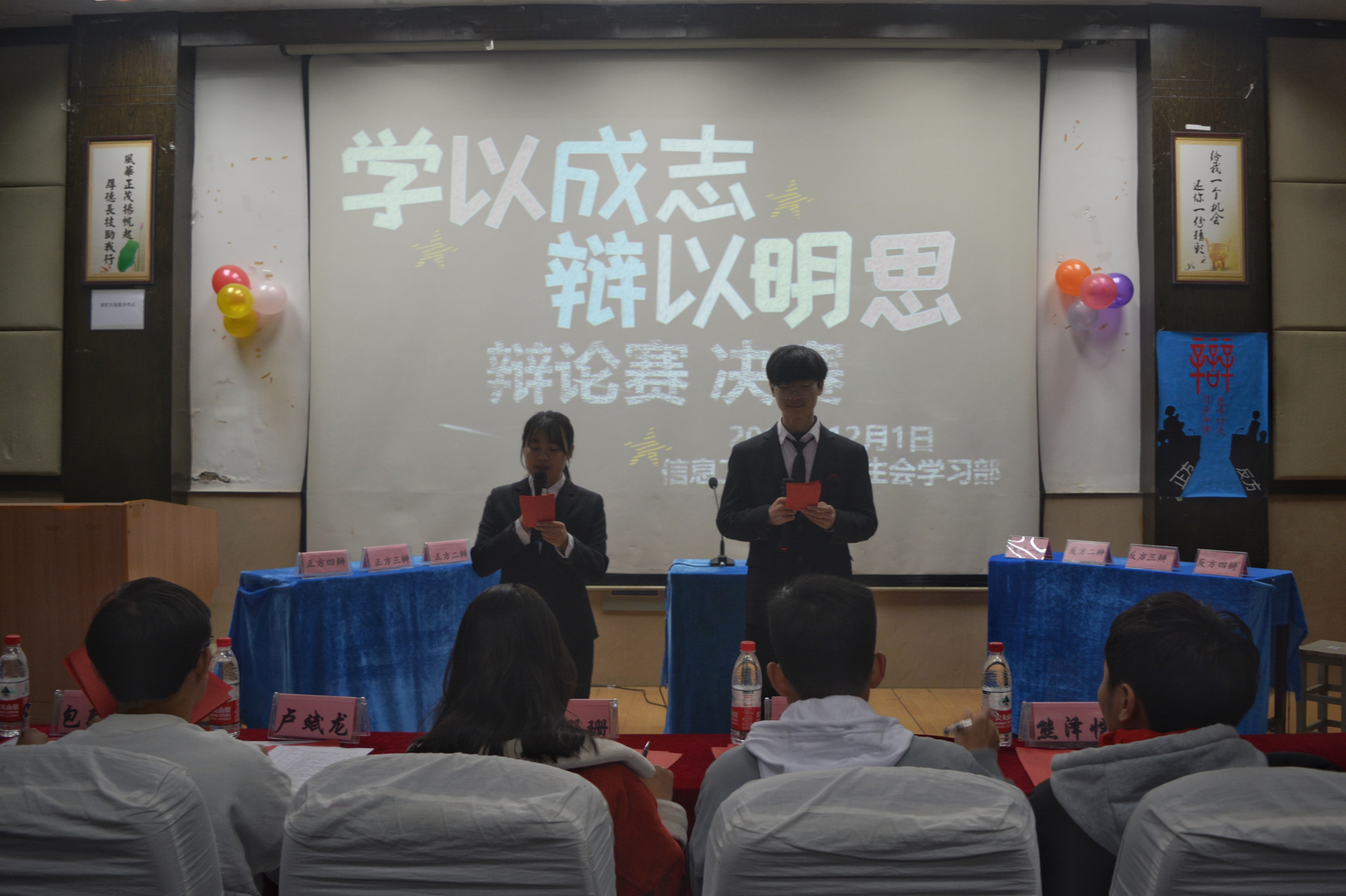 为丰富校园课余文化生活,拓展员工语言运用能力,引导他们多元化发展,12月1日,信息公司于图书馆106教室开展“学以成志,辩以明思”辩论赛决赛。PA视讯辩论协会会长盛珊珊,土木建筑公司辩论队队长卢斌龙,交通运输与物流公司辩论队队长熊泽恺担任本次活动评委。信息工程公司员工会副主席阎程、张雪岭,心素主席赵毅出席本次活动。