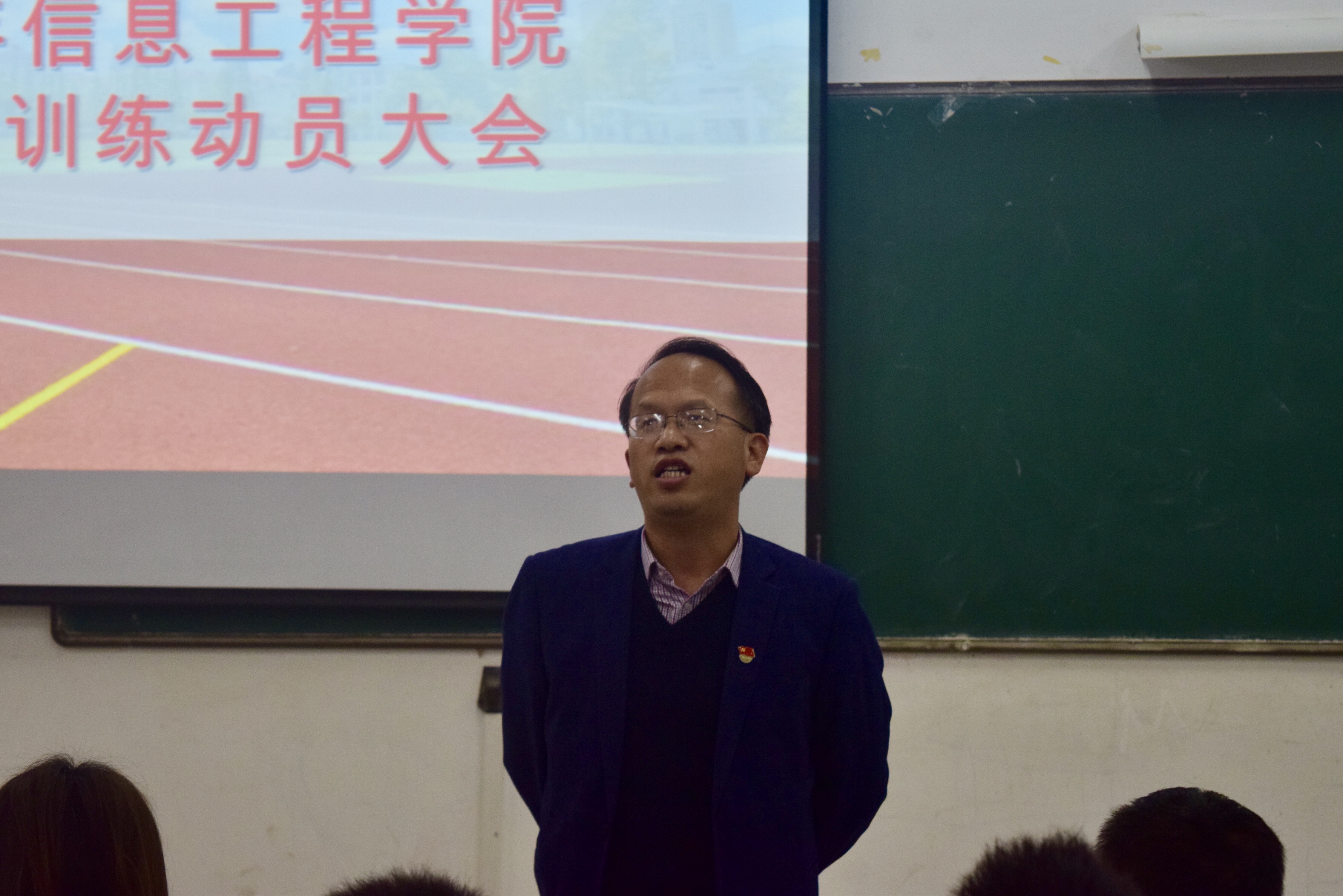为激发同学们的运动热情,鼓励同学们积极投身于体育运动当中,11月13日,信息公司田径队于逸夫楼112室召开动员大会。信息公司党委副书记何仲坚、学工办主任兼团委书记陈文锦、19级计算机类辅导员胡林娜出席会议,田径队全体队员与会。