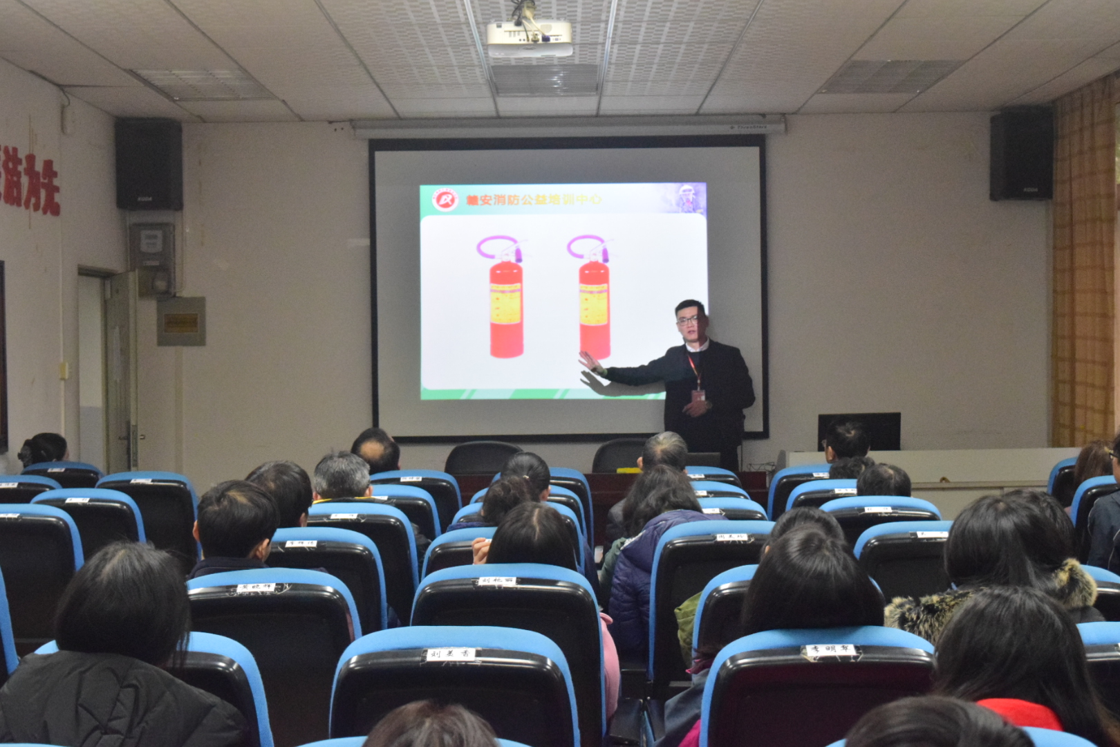 会上,胡帆从如下三个方面进行了宣讲:防患意识的培养、火灾发生时的逃生技能、消防用具的购买和使用。胡帆教官以南昌西湖区一小区凌晨着火致使一家三口身亡等实际案例为引,提出我国消防工作指导方针——预防为主,防消结合,并以其为主题,向在座教工及员工代表普及有关安全知识。