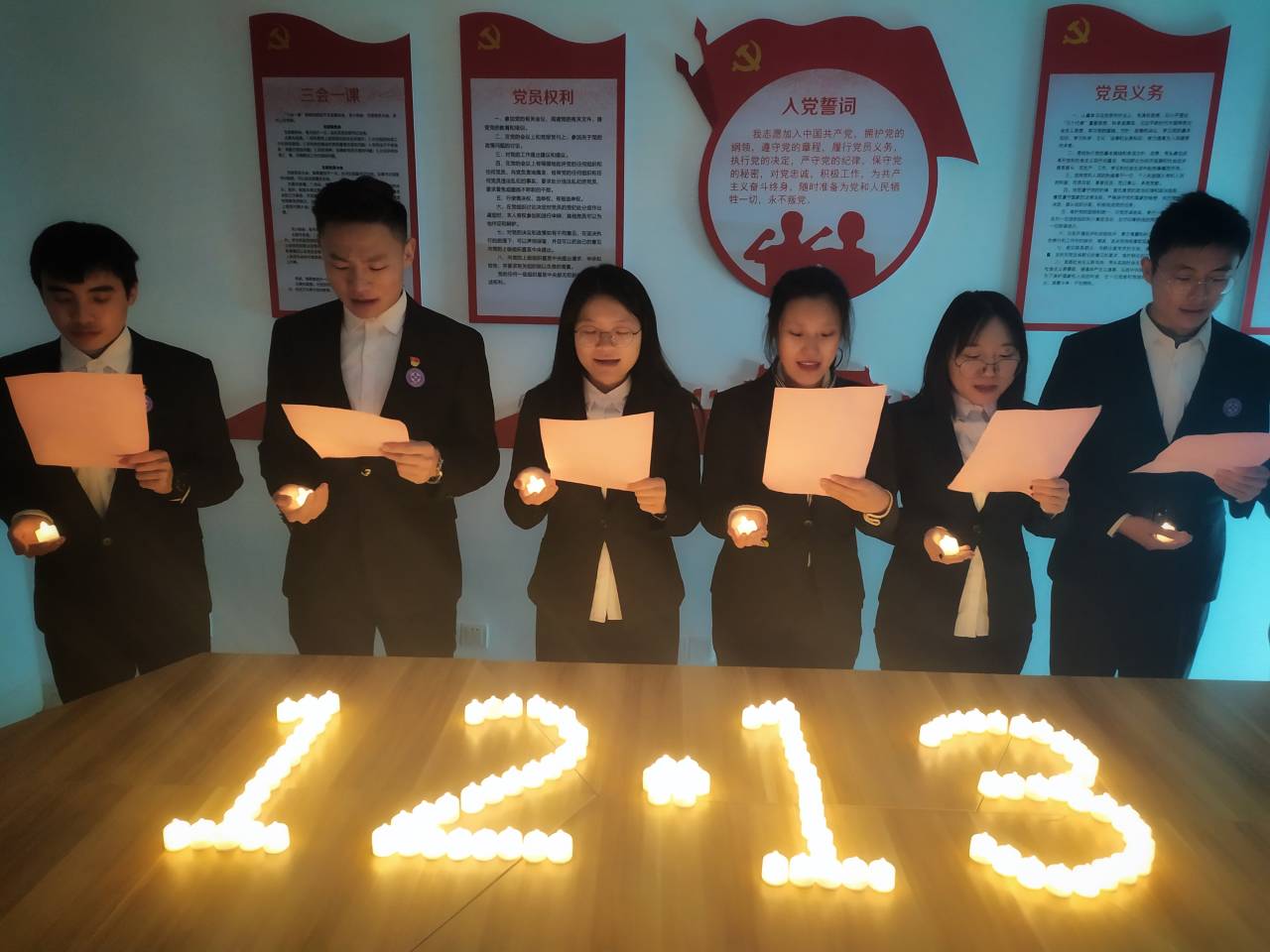 “亘古浩劫,文明罹难,百年悲叹,警钟鸣响。”13日当晚,于信息公司15栋党员工作站旁,信息党教中心及员工会成员身着正装、手托蜡烛,面对着电子蜡烛摆成的“南京”的字样,庄严地诵读悼念词。回想着惨痛的历史,学子们肃穆低头,敛声默哀。之后,学15栋宿舍部分熄灯,信息学子们用一个个寝室的灯光汇成“1213”的字样来表达哀思。