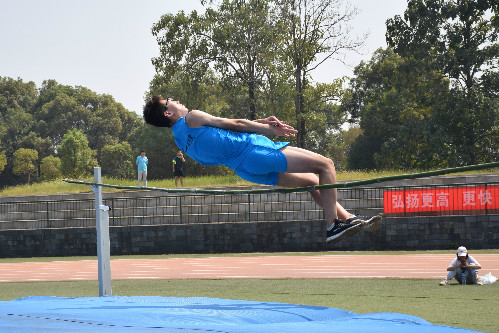 男子跳高从1.45m开始起跳,每次加5cm,每人每个高度均有三次机会。比赛开始前,信息公司的跳高运动员们不放过一丝机会,加紧热身、试跳,为接下来的比赛卯足一口气。比赛正式开始,三位运动员们保留实力,略显轻松,成功跳过第一杆,为接下来的升杆蓄力。一次又一次的助跑冲刺,一次又一次飞越竹竿……信息公司的运动员潘浩然一直在坚守。