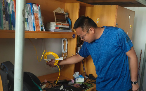 陈文锦对寝室线路安全进行检查