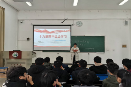 为将十九届四中全会重要指示精神的学习落到实处,提高班级同学法律意识,弘扬宪法精神,12月6日,信息公司19级电子信息类一、三、四班分别开展了“十九届四中全会”团课学习。各班全体同学到场,各班班长、团支书担任本次活动主讲。