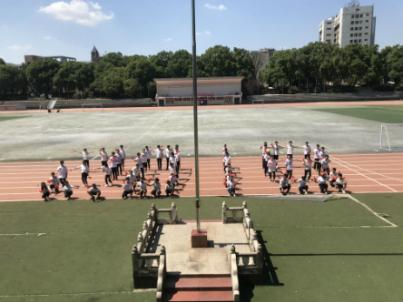 随后的活动中,17级计算机专业班委成员准备了红色和黄色油墨,并邀请每一位同学在铺好的白色塑料布上印下自己的手印,随着时间推移,一面巨幅国旗渐渐展现出它的相貌;与此同时,南区田径场上同学们自发摆起“1949”和“2019”字样,也突出展示了祖国七十年风雨历程中的种种变迁。