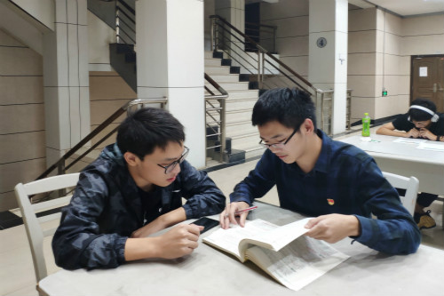 闫丰在图书馆为同学进行课程答疑