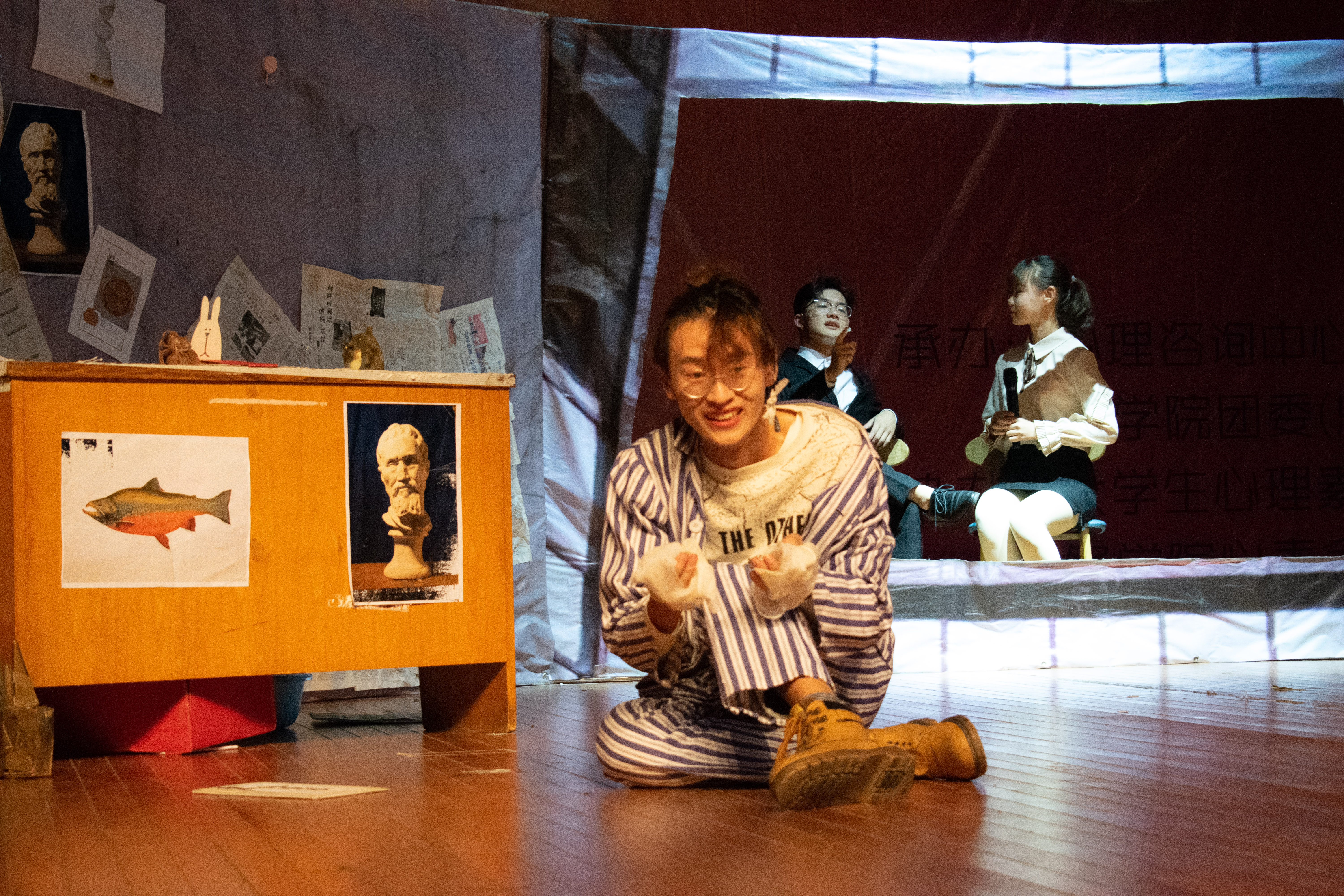 赵毅的表演富有感染力,他在舞台上或大笑,或嘶吼,他用他的台词牵动着观众的心弦。在赵初的经历中,观众们读到了初心的重要性,若赵初坚持初心,坚持制作手工艺品,最终也会走向成功。信息公司的表演契合当代“不忘初心 牢记使命”的主题,剧终,赵初那一句“行行好吧……”牵人心弦,观众瞬间泪目。信息公司的表演赢得了观众的热烈掌声。