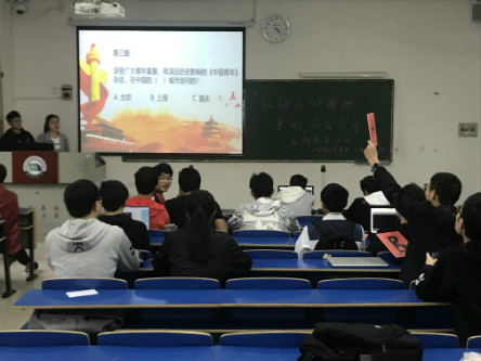 “深受广大青年喜爱,有深远历史影响的《中国青年》杂志在中国的哪一个城市创刊?”,活动中,17计算机2班班委为参与活动的同学准备了与五四相关的数十道题目,并由同学们进行抢答。