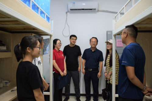 9月1日,信息公司经理赵军辉、党委副书记何仲坚、学工办主任陈文锦来到信息公司2019级新生男、女寝室走访慰问新生。全体2019级新生带班党员陪同。
