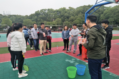 一旁的趣味性比赛正如火如荼地进行,规则要求参与人员站在3米外将羽毛球扔至篓内,5个球内进球2个以上就能兑换糖果、零食等各种小奖励。大家有秩序地排成长队,纷纷参与到比赛当中。现场欢声笑语,热闹非凡,不少同学表示获得了一项新技能。
