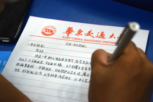 活动尾声,新生们在信纸上向一年后的自己写下目标与期望。来年此时,工作人员将会把信封发回新生手中,让新生在踏入大公司门一年后依然初心不忘。