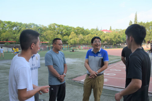 为更好地备战校运会,9月5日,信息公司党委书记汤兆平、党委副书记何仲坚来到南区田径场视察信息公司田径队训练情况,指导田径队工作。