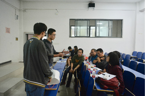 展示环节中,参赛选手们从生活中的实际问题出发,通过自主创新和改进现有技术等方向提出解决办法,并对项目的技术原理、可行性、完成度、市场前景等方面进行概述。其中,第五组同学的参赛作品《基于BLE的铁路工具定位跟踪管理系统》结合当下高新技术,利用BLE低功耗蓝牙传输模块,并从位置共享、行迹跟踪等多个方面为交通运输业提供便利和安全保障,赢得了评委的一致好评。答辩环节中,评委们针对项目的原理和可行性对选手提问,并说明了部分选手展示环节的时间分配不合理、幻灯片不够直观等问题。