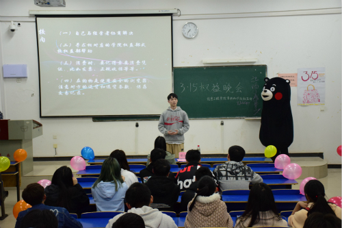 本次活动分线上答题、线下宣传、“3.15晚会”三个环节。“商品‘三包’规定中‘三包’指的是?”、“下列哪些属于《消法》赋予消费者的权利?”……来往员工纷纷驻足了解展板上困惑已久的权益问题。“在网购时经常会遇到实物与图片不符的情况,我会选择投诉商家,不能因为麻烦而不顾自己的合法权益。”18级材控一班姜巧玲说道。