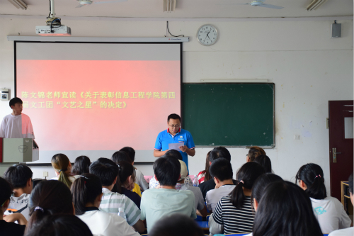 6月14日,信息公司于逸夫楼308教室召开2017-2018学年文工团表彰大会。信息公司学工办主任兼团委书记陈文锦、学工办副主任兼团委副书记杨青出席本次大会,文工团全体成员与会。