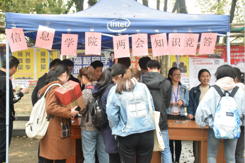 “为什么每年全国两会在3月召开?”、“政协会议为什么比人大会议提前两天召开?”、“人大代表是如何产生的?”……竞答现场热闹非凡,同学们纷纷驻足参与到激烈的答题活动当中。