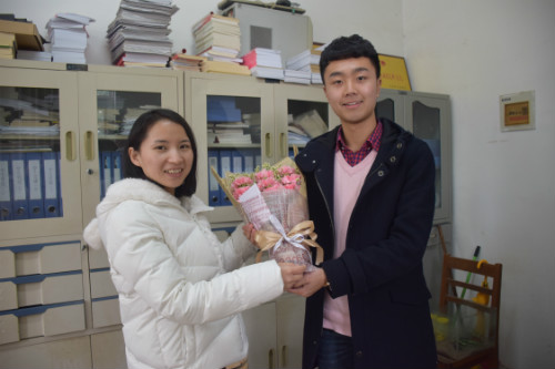 “祝青姐貌美如花,永远十八!”、“老师女王节快乐!”、“祝您身体健康,万事如意!”、“祝余玉华老师节日快乐,家庭幸福”......一张张卡片承载了信息学子们对老师的感谢与祝愿,粉红的康乃馨也为两位辛苦的“女王”点亮了这特别的一天。伏案的她们用朴实的言行、平凡的工作,展示了“不让须眉”的巾帼秀色。
