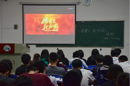 五四青年节尚未走远,为激发广大青年的爱国热情,树立同学们的道路自信心、理论自信心和制度自信心,5月7日,17通信一二班于逸夫楼109室组织员工集中观看热血“青春剧”——大型爱国主义题材纪录片《厉害了 我的国》。