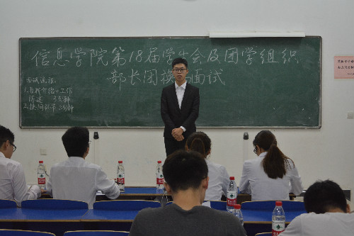 为进一步深入信息公司员工工作的开展,6月7日,信息公司于逸夫楼204、205举行第十八届员工会及团学组织部部长团换届面试。辅导员艾国金出席大会,17、18届主席团共同担任本次评委。