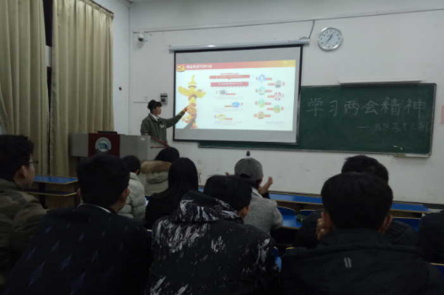 此次班会以“学习‘两会’精神”为主题,英才班长曾纪罗用幻灯片为大家简要介绍了3月3日及3月5日召开的全国政协十三届一次会议及十三届全国人大一次会议的基本情况,带领英才学员们围绕“两会”传达的思想展开深刻讨论。会上,大家纷纷各抒己见,阐述自身看法。