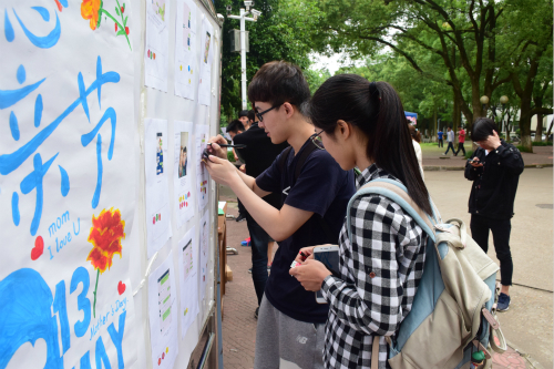 为了让同学们感受亲情的珍贵,延续中华民族的传统美德。5月11日,信息公司于南区一食堂前举办“感春晖寸草,扬赤子之心” 的母亲节主题活动。